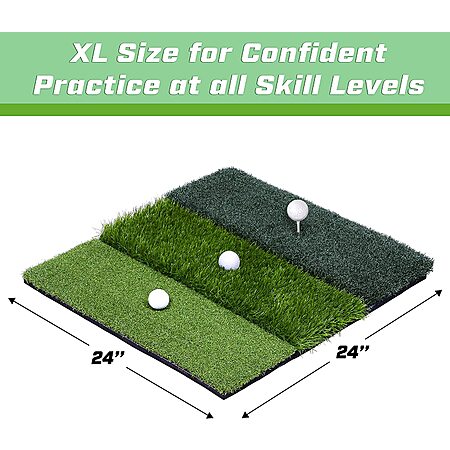 HUGE SIZE: 24" x 24" Tri-Turf golf hitting artificial grass mat for mastering your swing. Compatible with real tees and engineered to last thousands of practice swings to serve as your personal driving range and a great addition to any golf net