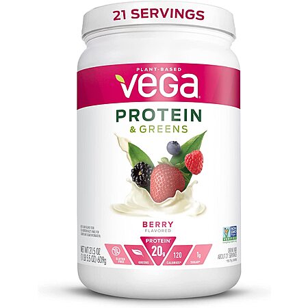 Vega Protein and Greens Vegan Protein Powder: 1.2-lbs (Chocolate) $11.05, 1.5-lbs (Berry) $14.30, 1.5-lbs (Vanilla) $14.40 & More w/ S&S + Free Shipping w/ Prime or on $25+