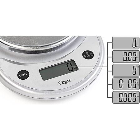 Model: Ozeri Silver Pronto Digital Multifunction Kitchen Scale - Accurate & Elegant - Weighs up to 11.24 lbs - 5 Units of Measurement - LCD Screen | ZK14-B