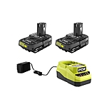 RYOBI ONE+ 18V Lithium-Ion 2.0 Ah Compact Battery (2-Pack) with 18V Lithium-Ion Charger PCL202KN - $59