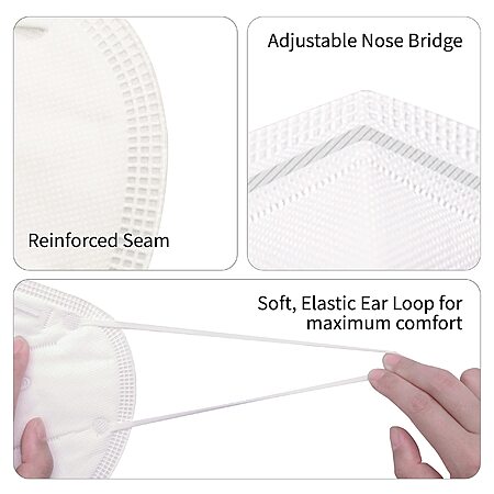 Model: BYD CARE KN95 Respirator, 50 Pieces, Breathable & Comfortable Foldable Safety Mask with Ear Loop for Tight Fit, GB2626 White , Regular