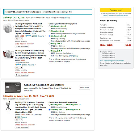 It seems like there are some glitches on their promotion.. If you add all of three items below, they come out to be free... I'm sure this will go fast and fixed once Amazon finds out... Also Vlogger Extension grip kit is expected be shipped in November.. Good luck!