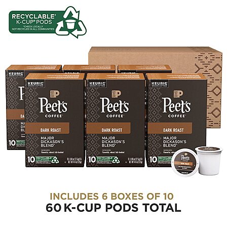 6-Pack 10-Count Peet's Coffee Dark Roast K-Cup Pods (Major Dickason's Blend)