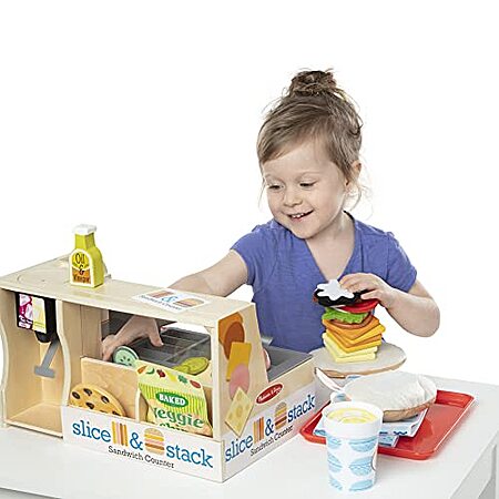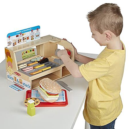 Melissa & Doug Wooden Slice & Stack Sandwich Counter with Deli Slicer – 56-Piece Pretend Play Food Pieces - $25.99 + F/S - Amazon