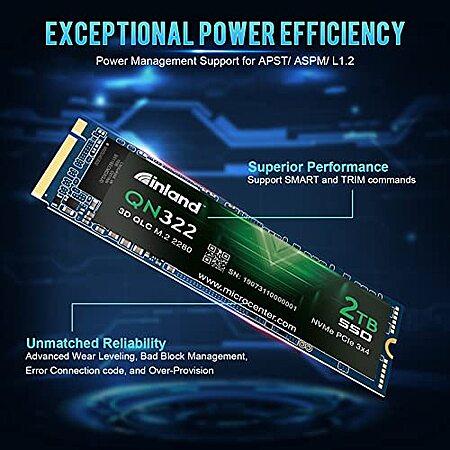 Micro Center via Amazon has for Prime Members: 2TB INLAND QN322 NVME M.2 2280 PCIe Gen 3.0x4 3D NAND SSD Internal Solid State Drive on sale for $125.99. Shipping is free.