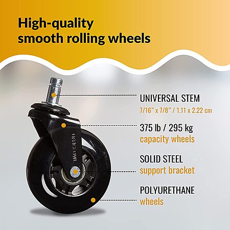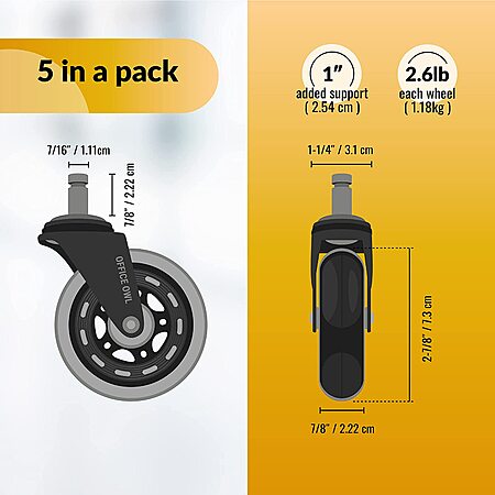 House of Lords via Amazon has 5-Count Office Owl Office Chair Replacement Caster Wheels (Black) for $9.51. Shipping is free with Prime or on orders $25+.