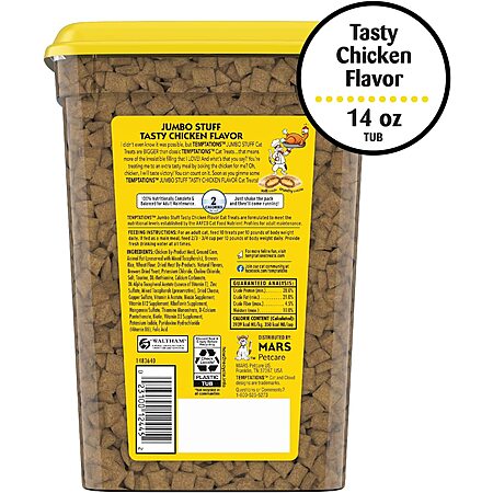 Temptations Crunchy & Soft Cat Treats: 14-oz Jumbo Chicken