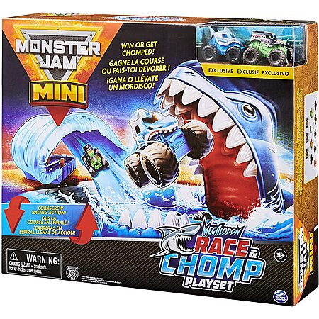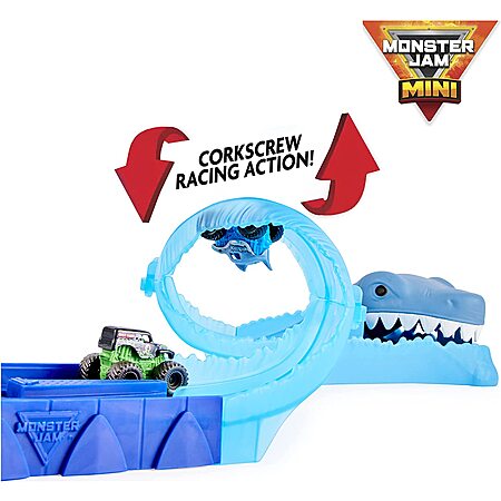 Monster Jam Mini Megalodon Race & Chomp Kids' Playset w/ 2 Mini Trucks $7 + Free Shipping w/ Prime or on orders over $25