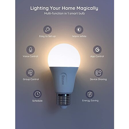 4 Pack Govee Smart WiFi LED Light Bulbs, Dimmable Soft Warm White, Work w/ Alexa & Google Assistant $16.49 + Free Shipping w/ Prime or $25+ orders