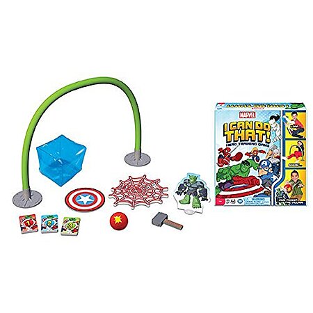 About this Item:- What you get - Marvel I can do that! Comes with 45 activity cards, 1 foam portal, 1 cosmic cube, 1 green Goblin, 1 Spider-Man's web, 1 Captain America's shield, 1 Thor's hammer, 1 Captain Marvel energy ball, and instructions.