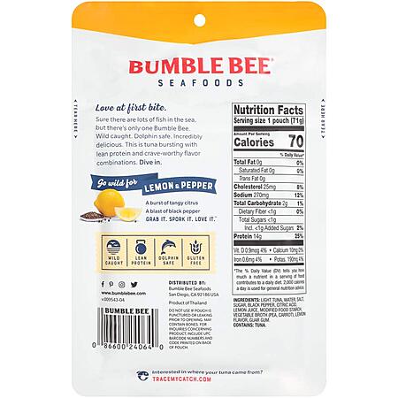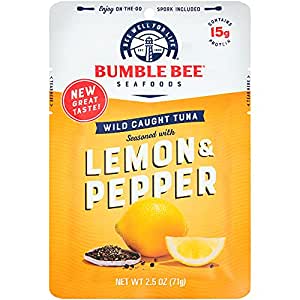 Model: Bumble Bee Lemon & Pepper Seasoned Tuna, 2.5 oz Pouches (Pack of 12) - Ready to Eat, Spork Included - Wild Caught Tuna Pouch - 15g Protein per Serving - Gluten Free