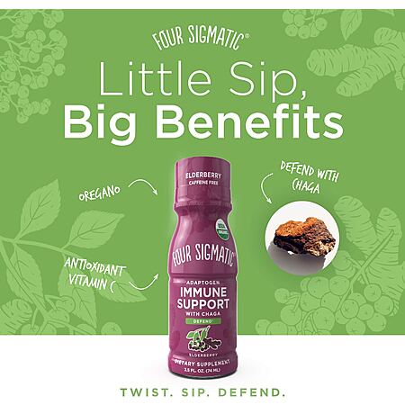 Adaptogen Immune Support Shot by Four Sigmatic | Caffeine Free, Vegan Chaga Mushroom Shot | Organic Vitamin C Drink | Elderberry Shot for Immune System Support, S | 6 Count $10.7