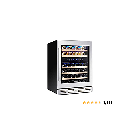 Kalamera 24'' Wine Cooler Refrigerator 40 Bottle - Dual Zone Built-in or Freestanding Fridge with Seamless Stainless Steel & Triple-Layer Tempered Reversible Glass Door a - $699