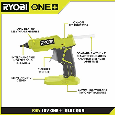 Ryobi One+ 18V Cordless Compact or Full-Size Glue Gun (P306, Tool Only) on sale from