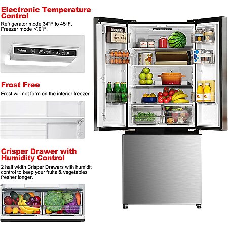 Amazon has 16 Cu. ft Galanz French Door Refrigerator with Bottom Freezer (GLR16FWED08) for $471.05. Shipping is free.