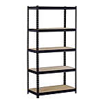Organize a garage, basement or work area with this Muscle Rack 5-Shelf Steel Shelving. It is easy to assemble with a hammer and requires no nuts or bolts and includes five particleboard shelves and support loads up to 4,000 lbs. The shelves are adjustable in 1.5" increments and have a black finish for enhanced corrosion resistance, making it an ideal choice for you. It can be used in a garden shed, garage, basement, restaurant or any room where you need extra storage. It will help to keep your space clutter-free by giving everything its very own place. Use it for your home or office for everyday storage for tools, household items, cleaning supplies, filing and office supplies, pantry items, seasonal items and much more. This Muscle Rack 5-Shelf Steel Shelving is attractive, sturdy and strong and makes an ideal addition to your home.