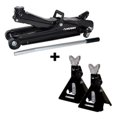 Husky 2.5 Ton Low-Profile Floor Jack + 2-Pack 3-Ton Jack Stand Bundle $62.61 + Free Shipping