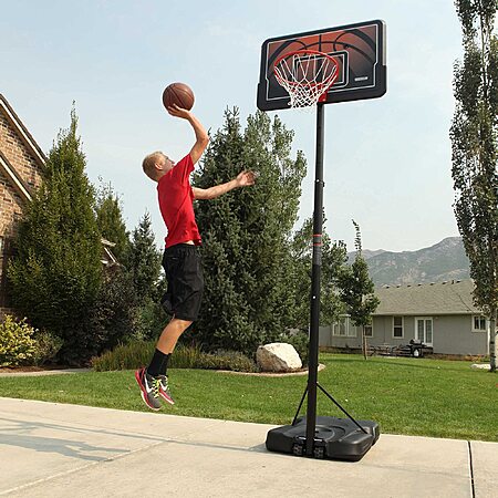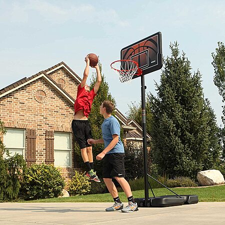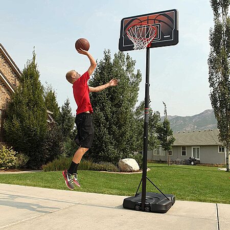 Amazon has 44-In Backboard Lifetime Height Adjustable Portable Basketball System (Black/Orange) for $103.10. Shipping is free.