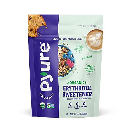 🚫 ZERO SUGAR + ZERO CALORIE SWEETENER: Pyure Organic Erythritol Sweetener contains zero sugar, zero carb, zero calorie, and has a zero glycemic index, making it the best sugar free sugar replacement. Pyure Organic Erythritol is a plant-based sweetener made with 100 percent erythritol. Pyure Erythritol is a plant-based sweetener that is always USDA Organic Certified and Non-GMO Project Verified.