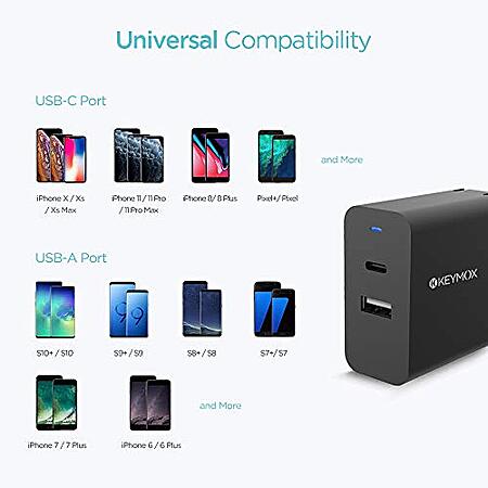 Model: USB C Charger, KEYMOX 30W 2-Port Charger with 18W Power Delivery Adapter,for iPhone 12/12 Mini/12 Pro Max /11 Pro, Galaxy S10 S9+ S9, iPad Pro,Samsung,Google Pixel, Huawei and More