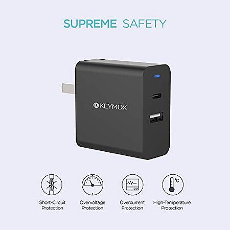 KEYMOX 30W 2-Port Charger w/ 18W USB-C Power Delivery Adapter