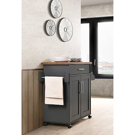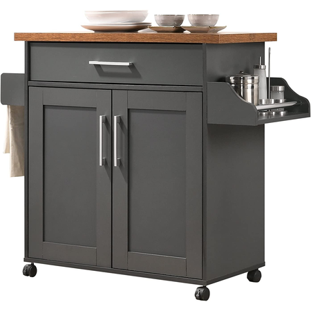 Hodedah Kitchen Island with Spice Rack, Towel Rack & Drawer (Grey w/ Oak Top)