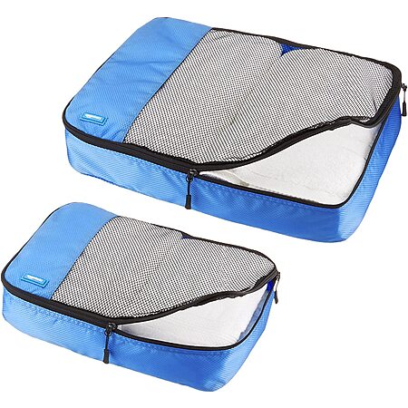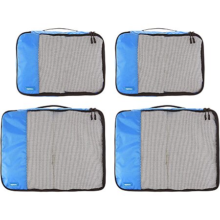 Model: Amazon Basics 4 Piece Packing Travel Organizer Cubes Set - 2 Medium and 2 Large, Blue