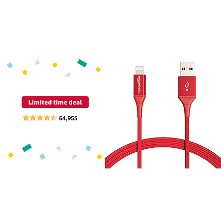 3' Amazon Basics Nylon Braided Lightning to USB-A Cable (Red)