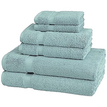 6-Piece Amazon Brand Pinzon Organic Cotton Bathroom Towels (Spa Blue or Peach/Pink) $10.59