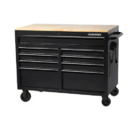 Model: 46 in. W x 24.5 in. D Standard Duty 9-Drawer Mobile Workbench Tool Chest with Solid Wood Top in Gloss Black
