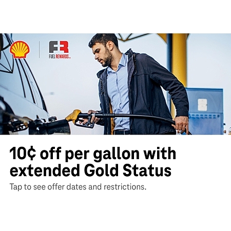 Shell:10¢ off per gallon with extended Gold Status