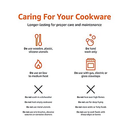 HAND-WASH ONLY: Hand-wash only to protect the non-stick surface coating; cooking set is not dishwasher-safe