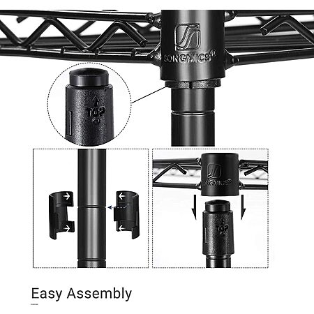 note that per the reviews you need to be careful with the top shelf. once you put it on if you try to remove it, it will most likely putt he pole mounts off the cheap shelf.