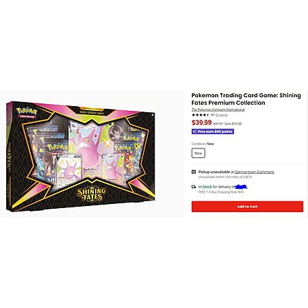 This is for either of two collections (Shining Dragapult VMAX or Shining Crobat VMAX, sadly, you don't get to choose). Free shipping at $49+. Can use Gamestop Pro rewards certificates on them.