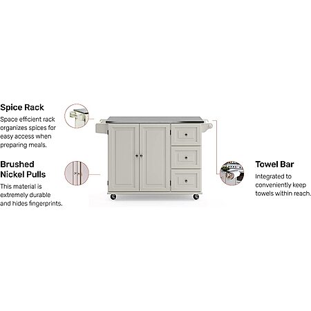 Homestyles Stainless Steel Top Kitchen Cart Rolling Mobile Island (Off White)