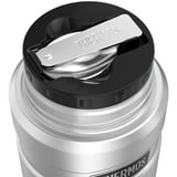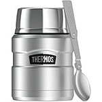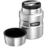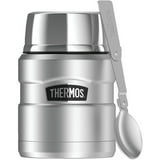 The Thermos Stainless King 16ounce Stainless Steel Food Jar rules for taking the food you love anywhere. Keep fresh fruit and vegetables cool for up to 14 hours while you take on the day. For your favorite hot soups or oatmeal, every sip stays piping hot for up to 9 hours. Your options are endless. Count on Thermos vacuum insulation to keep the weather out and the delicious in. It's easy to fill, easy to clean, and comes crowned with a built-in serving bowl lid. As a bonus, you get a full-sized folding stainless steel spoon that fits right into the lid. Thermos makes high-performance and durable food jars fit for a king or queen. Constructed with double-wall stainless steel, this insulated food jar is durable and designed to have a contoured shape that's easy to grip.