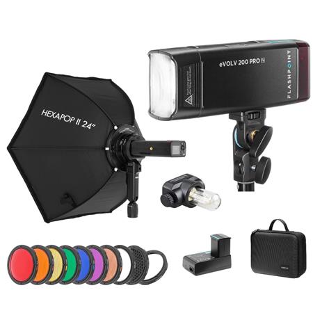 Flashpoint eVOLV 200 Pro TTL Pocket Flash Kit + Glow HexaPop 24" II and OTA Adapter Set $399 + free s/h