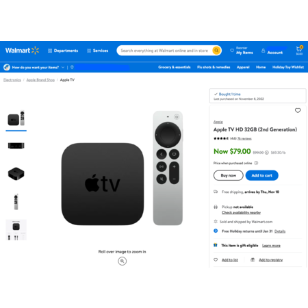 AppleTV 1080p 32gb (2021 model) - $79.00 w/free shipping @ Walmart