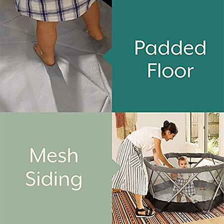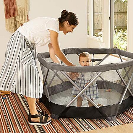 OVERSIZED CANOPY – This playpen has an oversized 6-panel canopy with 3 mesh panels.