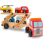 TRUCK AND EMERGENCY VEHICLE TOY SET: The Melissa & Doug Emergency Vehicle Carrier includes a two-level tractor trailer that picks up and delivers four emergency vehicles. The carrier is easy to load, with a second level that lowers to allow kids roll the vehicles onto 2 different levels.