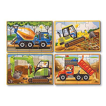 Melissa & Doug Jigsaw Puzzles: 48-Pc 4-in-1 Construction Vehicles Wooden Puzzles