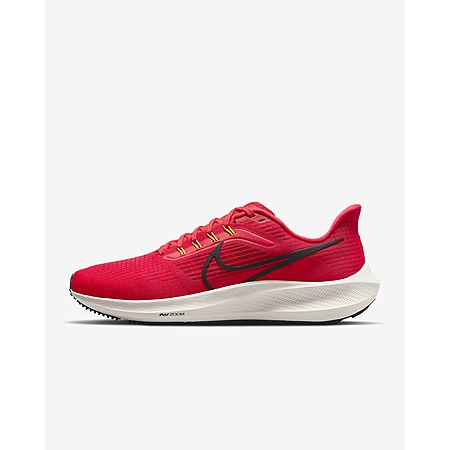 About this item:- Running is your daily ritual, with every step taking you closer to your personal goal. Let the Nike Air Zoom Pegasus 39 help you ascend to new heights, whether you're training or jogging, with its intuitive design. More lightweight up top than the Pegasus 38 and ideal to wear in any season, it has a supportive sensation to help keep your feet contained, while underfoot cushioning and double Zoom Air units (1 more than the Peg 38) give you an extra pop to your step.