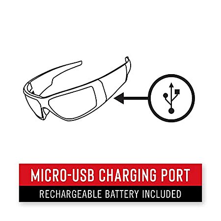 - MICRO-USB RECHARGEABLE: Easily recharge the battery for your lighted safety glasses using the convenient, built-in Micro-USB Port.