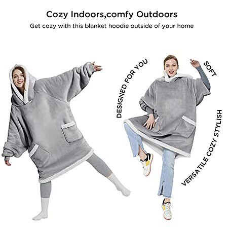 Bedsure Wearable Sherpa Fleece Blanket Hoodie (Standard, Grey) $15 & More + Free Shipping w/ Prime or on Orders $25+