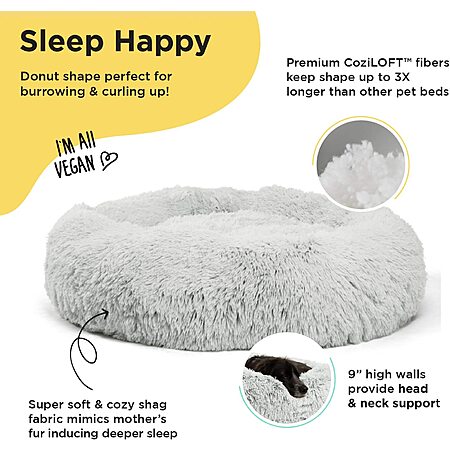 Best Friends by Sheri The Original Calming Donut Cat & Dog Bed (Medium 30"x30", Shag Frost Gray) $24.99 + Free Shipping w/ Prime or on orders over $25