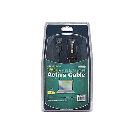 Monoprice 5-meter USB 3.0 A Male to A Female Active Extension Cable, Black $7.99 + FS w/ Prime