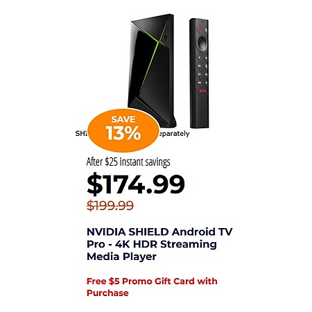 16GB NVIDIA Shield TV Pro 4K Android Streaming Media Player + $5 Newegg Promo eGift Card on sale for