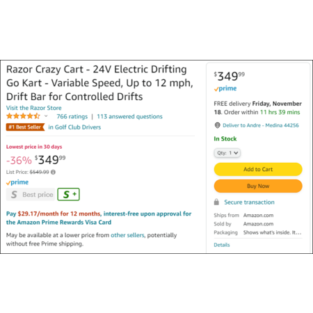 Razor Crazy Cart - 24V Electric Drifting Go Kart - $350 on Amazon $349.99
