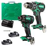 Metabo HPT 18V Brushless Cordless Hammer Drill & Triple Hammer Impact Driver w/ 2x 3Ah Li-ion Batteries, Charger & Case (KC18DBFL2CM) for