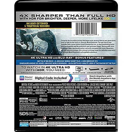 Jurassic World Dominion - Extended Edition (4K UHD + Blu-ray + Digital) - $12.96 - Amazon